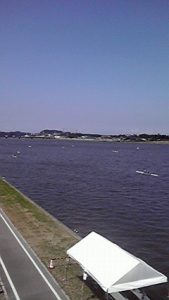 福岡県の遠賀川でインターハイのボートの仕事。
