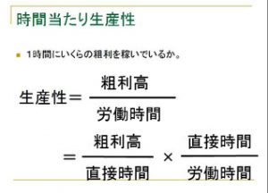 粗利高を労働時間で割ると、時間当たりの生産性を求めることができる。